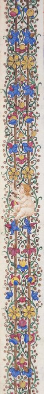 This splendid collection was kept in a richly decorated library in the royal palace, near the chapel and throne-room. In keeping with their royal setting, volumes were bound in gilded leather or colored velvet, with King Matthias’s coat-of-arms painted on the covers of codices.
