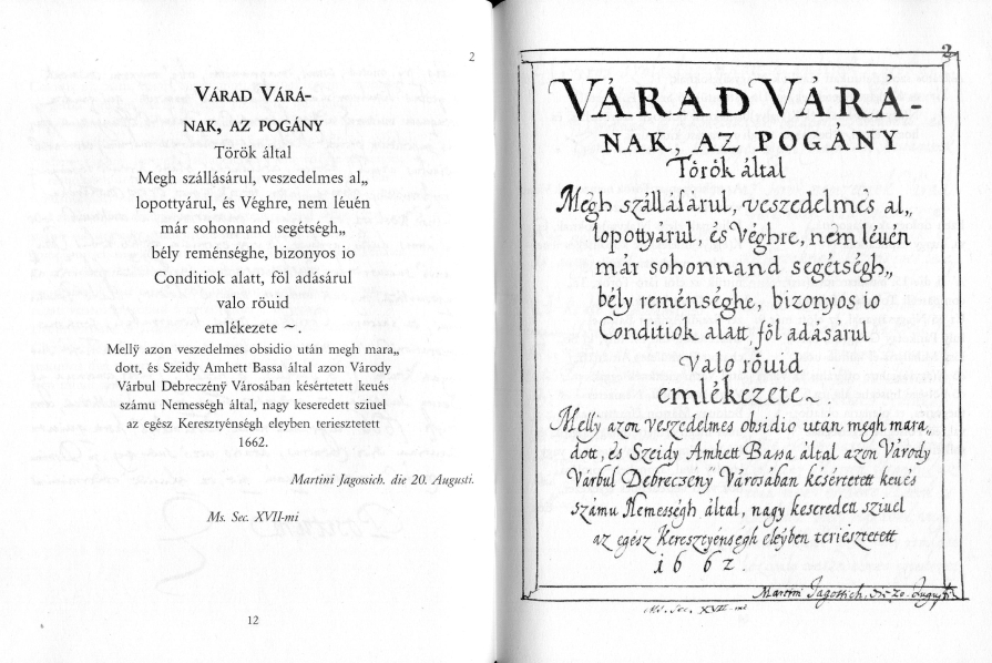 A hasonmás kötet az Országos Széchényi Könyvtár és a Partium Kiadó közös gondozásában jelent meg. A mű nagyváradi bemutatójáról itt olvashatnak.