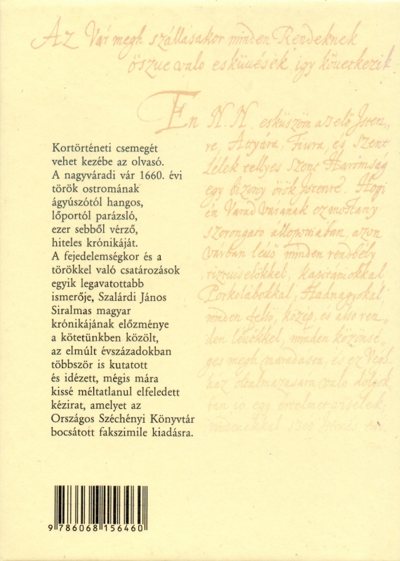 A nagyváradi vár 1660. évi török ostromának krónikáját a török csatározások egyik legavatottabb ismerője, Szalárdi János (1601–1666) írta meg.