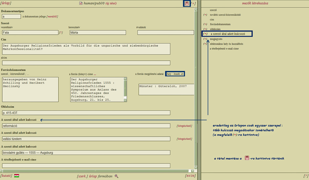 Cikk (folyóiratban, évkönyvben megjelent publikáció) bejelentése esetén: