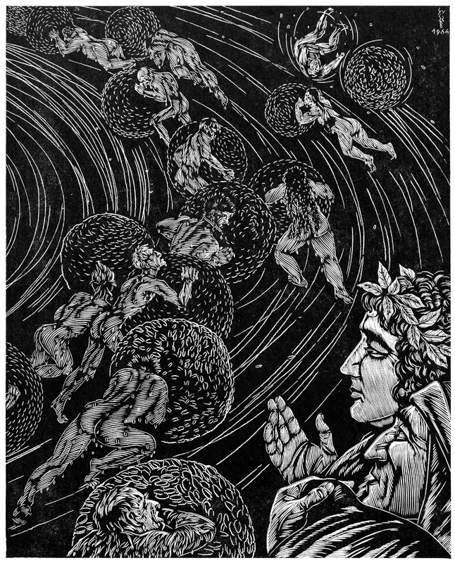 Fáy Dezső (1888–1954) fametszetei egy tervezett Dante-kiadáshoz készültek, de a könyv sajnos nem jelent meg. Az elkészült nyomatokat 1931-ben egy csoportkiállításon mutatta be az Ernst Múzeumban, képei nem egy-egy ének meghatározó jelenetét mutatják be, inkább víziókat, melyek képzeletében olvasás közben támadtak. Fáy nem annyira illusztrálni, mint inkább díszíteni szerette volna a megjelenő könyvet negyven metszetével, melyekből válogattunk.