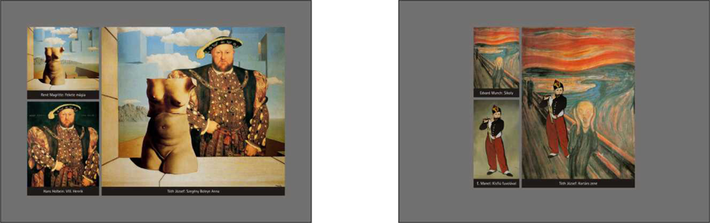 A Múzeumok Éjszakájának ez évi mottójához kapcsolódva (Humor a köbön) a most kiállított két sorozat – a Füles mester kisded játékai és a Budapesti anziksz – még nem szerepelt az OSZK tárlatain. A nézők a fotográfia és a festészet találkozását Füles mester szemüvegén át tekinthetik meg. Nem túl gyakran találkozni olyan fotóval, amelynek ihletője egy reneszánsz festmény… Tóth József eltérő korok festményeit társította, sajátosan átalakítva e képek közlendőjét, hangulatát. A festményekre asszociálva, a modern technika segítségével készítette el fanyar humorú fotográfiáit. Másik kiállított sorozata, a főváros ismert látványosságait, azok építészeti részleteit fűszerezi egy-egy szokatlan, meglepő elemmel.