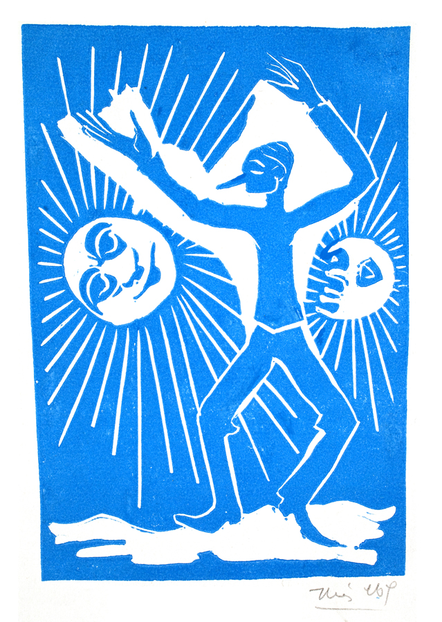 Ezt a címet adta Illés Árpád festő, grafikus, Weöres Sándor barátja annak a linómetszetnek, mely a költőt valóban Nap és Hold mozgatójaként, azaz a világegyetem mozgásban tartójaként ábrázolja.