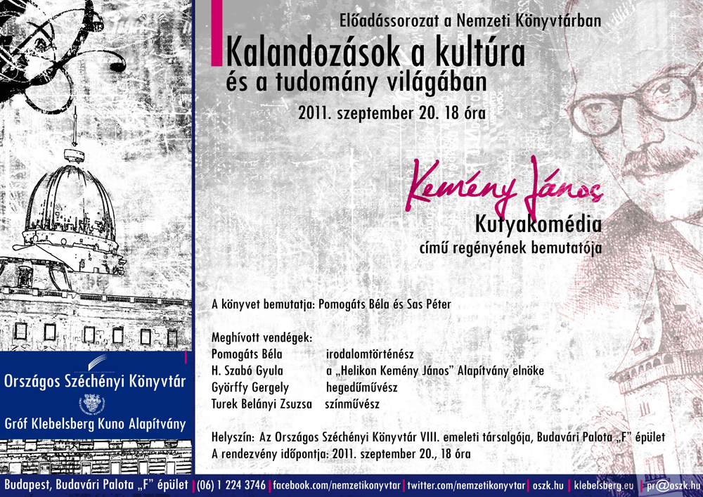 A rendezvény időpontja: 2011. szeptember 20., 18 óra; helyszíne: Országos Széchényi Könyvtár VIII. emeleti társalgó [3]; a könyvtár megközelítése. [4]