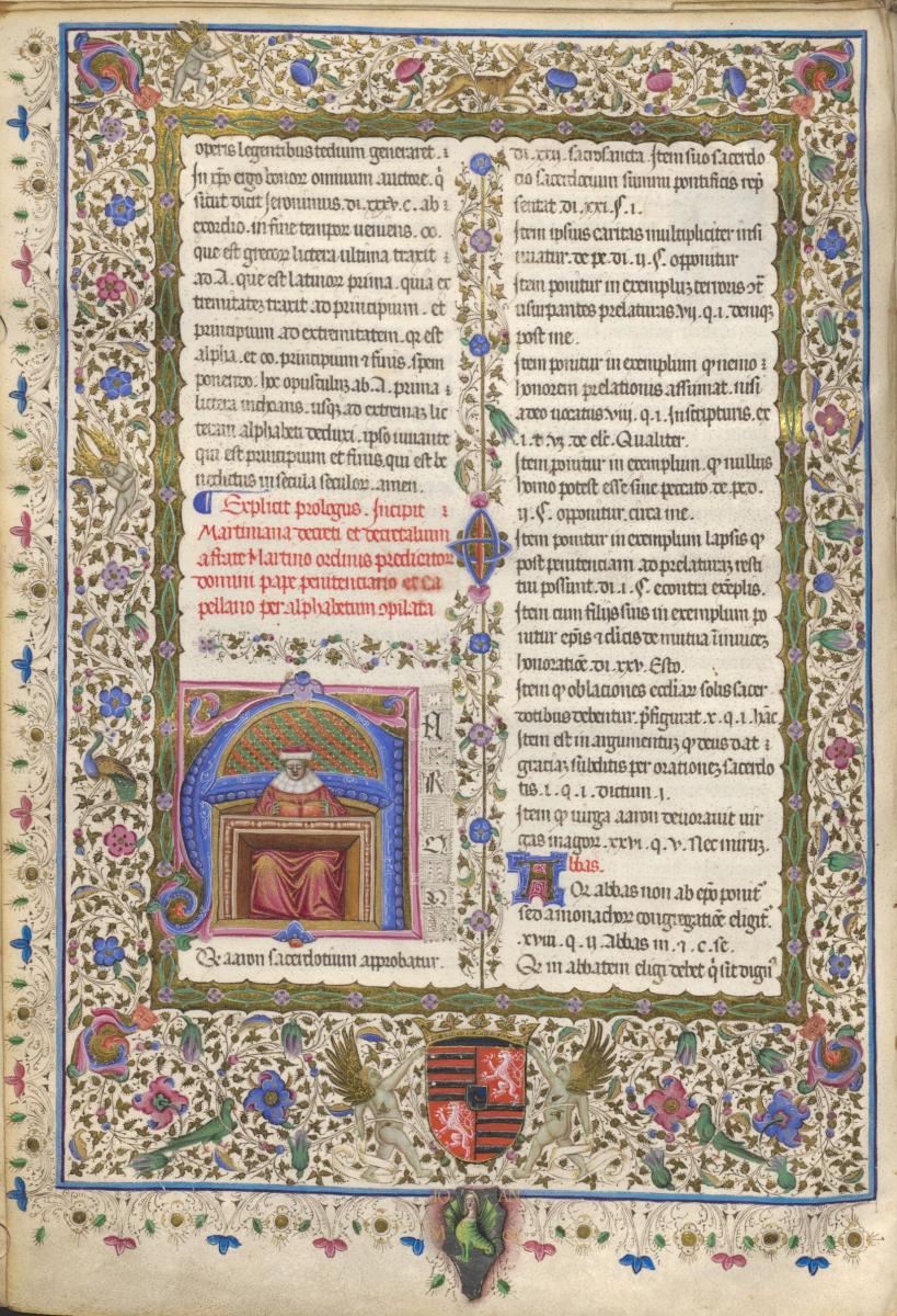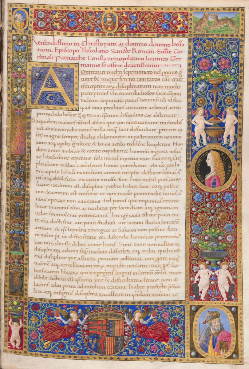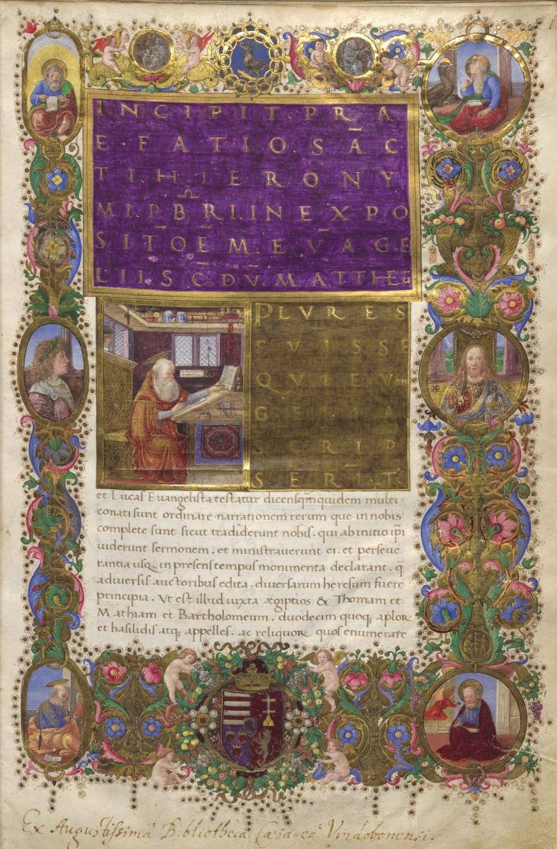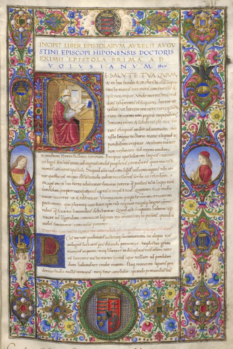 The Corvina Library was the renowned collection of King Matthias Hunyadi (1458–1490), and was considered the first Renaissance royal court library north of the Alps and outside Italy. The volumes, with their distinctive bindings and heraldic decorations, formed a unified and representative collection assembled in the final years of King Matthias’s reign. Although the exact size of the library is unknown, it is believed to have included up to 2000 volumes, mostly manuscript codices with a smaller number of printed books. The collection was built both from Italian orders and from the codex-making workshop of the royal court in Buda, and also incorporated older books from various former owners.