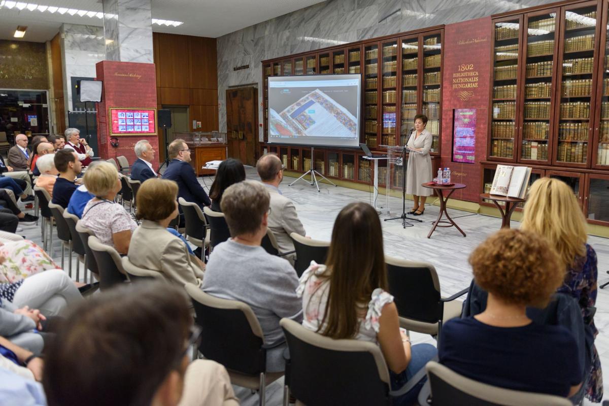 The ceremonial event took place in the Founders' Hall on the 6th floor of the OSZK. Director-General Dávid Rózsa delivered the opening address, followed by a keynote speech from Magdolna Závogyán, State Secretary for Culture at the Ministry of Culture and Innovation. Afterwards, a professional lecture was given by Edina Zsupán, head of the HUN-REN–OSZK Fragmenta et Codices Research Group.