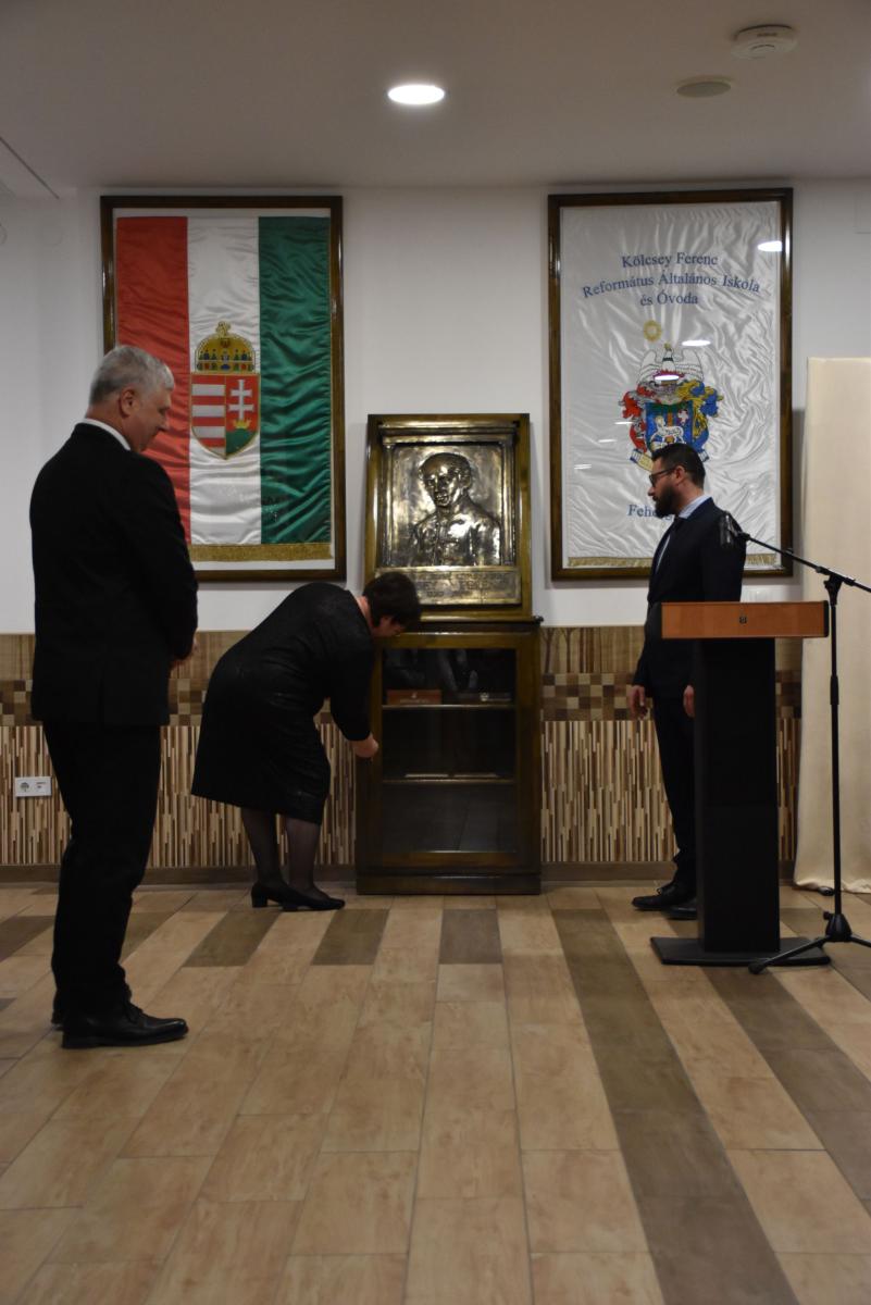 Az ünnepségen részt vett Mészáros Tamás, az Országos Széchényi Könyvtár általános főigazgató-helyettese is, aki a Himnusz nemesmásolatát hozta ajándékba az intézménynek. Az értékes dokumentumot Szarkáné Balogh Katalin főigazgatónak adta át. A főigazgató ünnepi beszédét követően megköszönte a különleges ajándékot, majd elhelyezte azt a dombormű alatt kialakított vitrinben.