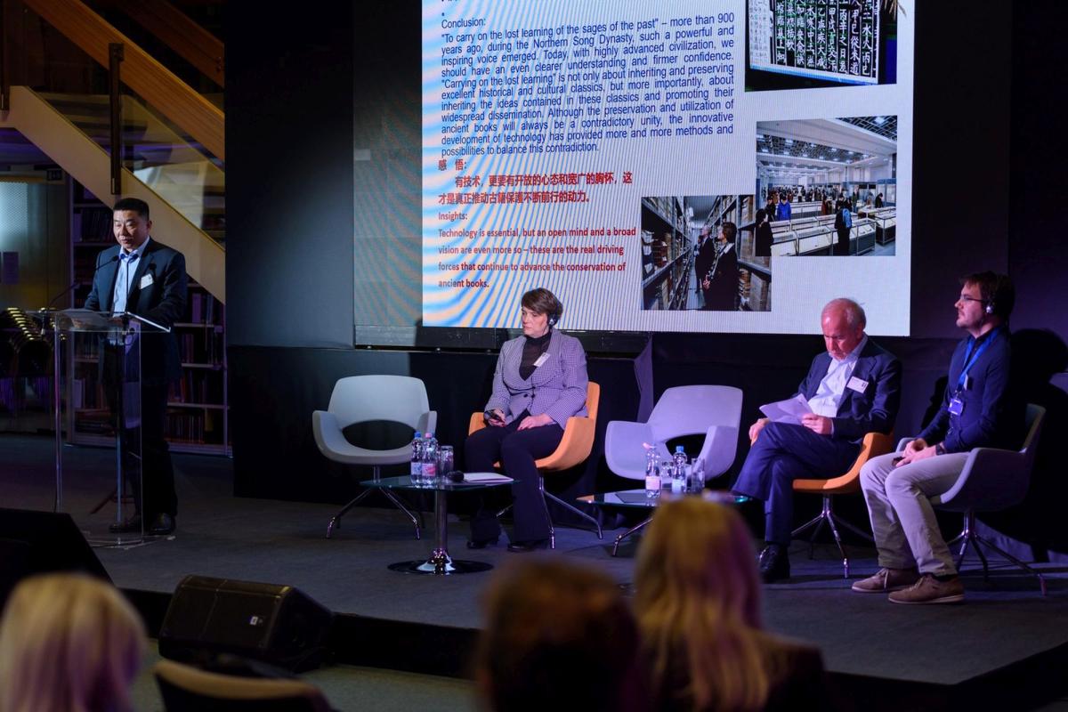 A hétfői program során többek között Liu Tung, a hangcsoui közkönyvtár főigazgatója a közösségi olvasási terek megújulásáról, Ting Jung, a Nanking Könyvtár igazgatóhelyettese az adatelemzés és együttműködés lehetőségeiről beszélt. Jasmina Ninkov, a Szerb Nemzeti Könyvtár igazgatója zárta a plenáris előadásokat, a könyvtárak jövőjét a kapcsolódás, alkotás, interakció, inspiráció fogalmai mentén értelmezve.