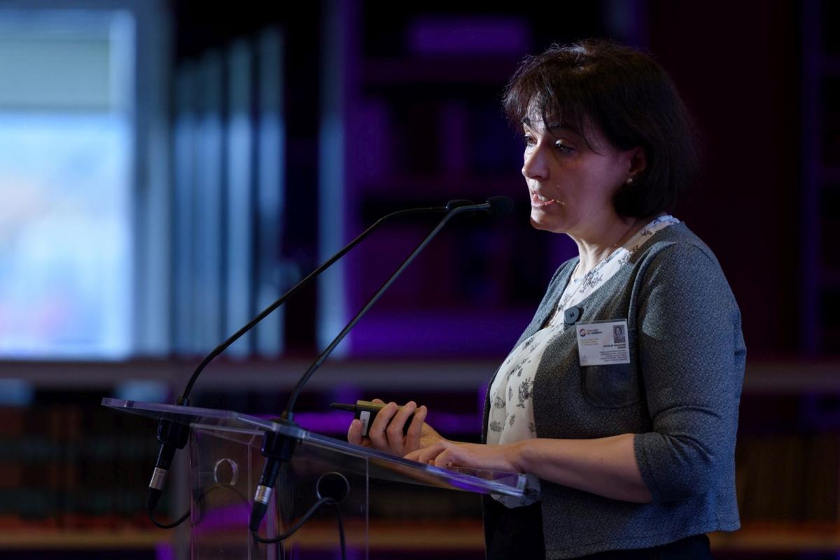 Gerencsér Judit, az MNMKK Országos Széchényi Könyvtár általános főigazgató-helyettese köszöntőjében hangsúlyozta: „Az előttünk álló napokban többször is lesz alkalmunk tanulni egymástól, inspirálódni egymás által, mert bírjuk szakmánkat és birtokoljuk azt a nyelvet, amely magunkon keresztül hivatásunkhoz visz.” Angol nyelvű előadásában kiemelte: a könyvtárak ma a gyorsan változó felhasználói szokások, a digitális átalakulás és a mesterséges intelligencia kihívásaival néznek szembe. Mint mondta: „A jövő könyvtára csak akkor születhet meg, ha közösen építjük és formáljuk azt.”