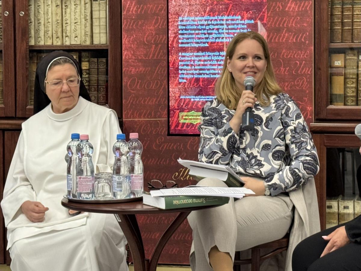 2025. október 14-én rendeztük meg a Széchényi-könyvestek második beszélgetését. Vendégünk volt Baritz Sarolta Laura közgazdász, domonkos szerzetes, a Summa oeconomiae című könyv elsődleges szerzője és Regéczy-Béres Melinda, a Béres Gyógyszergyár Zrt. kommunikációs igazgatója, egyike annak a tizennégy cégvezetőnek, akivel a szerző interjút készített, jó gyakorlatokkal támasztva alá a mű elméleti megállapításait.