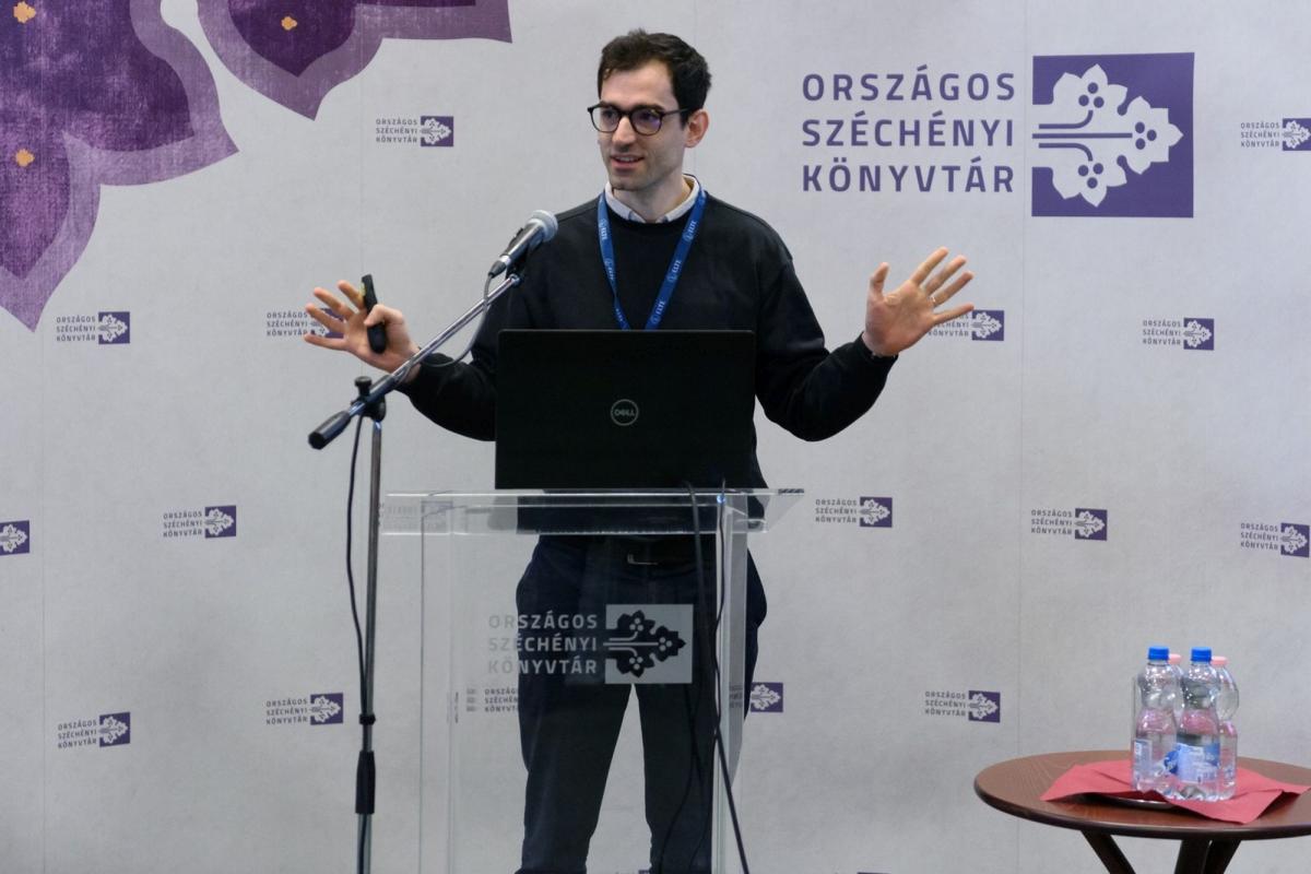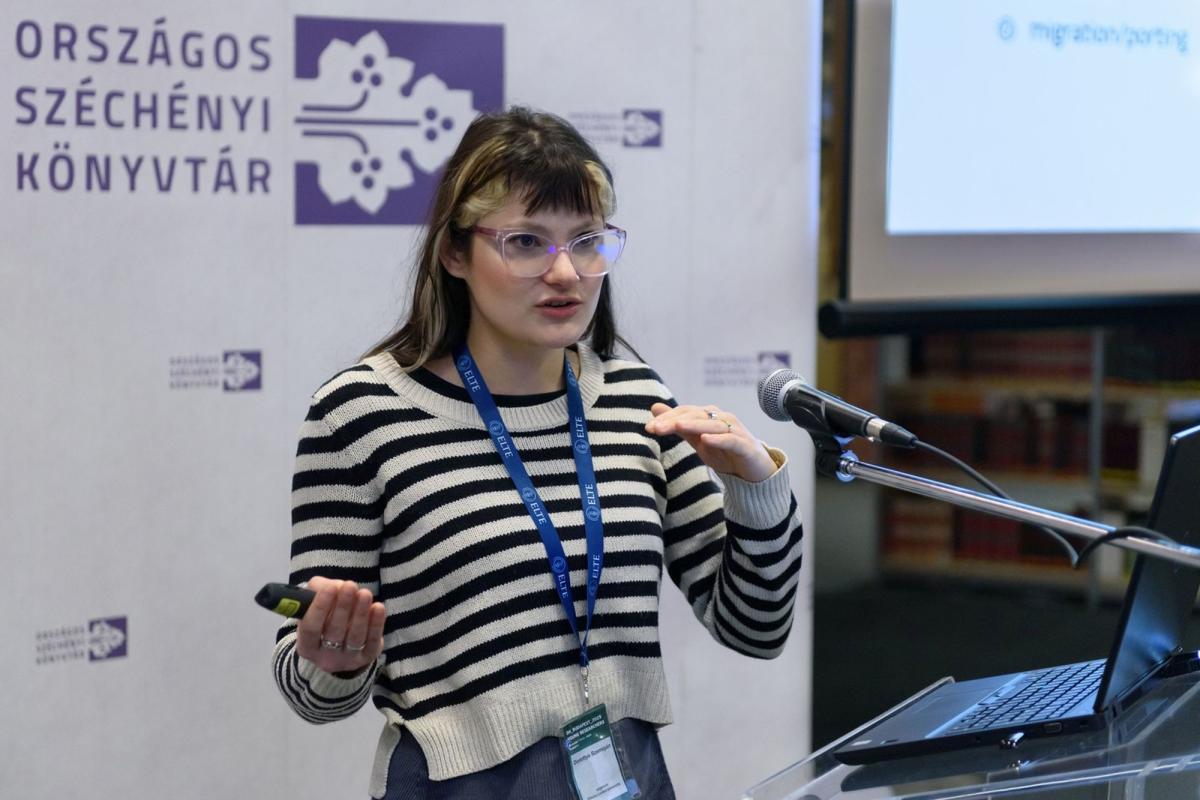 A november 21-i konferencianapnak az Országos Széchényi Könyvtár adott otthont, ahol a kulturális örökség, az irodalom és a mesterséges intelligencia kapcsolódási pontjai kerültek fókuszba. Gerencsér Judit, az OSZK általános főigazgató-helyettese plenáris előadásában a könyvtári szakma új feladatait vázolta fel a mesterséges intelligencia korszakában, kiemelve a digitális műveltség és a szakmai felelősség interdiszciplináris szerepét. A kulturális örökség és az MI kutatási metszeteiről Nagy Mihály és Sfet Ingrid tartott előadást az eszközválasztás módszertani dilemmáitól a multimodális valláspedagógiai stratégiákig terjedő témákkal. Az irodalmi és színházi megközelítéseket Hadeel Endewy és Szemigán Dorottya képviselte, akik az MI által támogatott interaktív színházról, az algoritmikus olvasás korlátairól és a generatív költészeti modellként vizsgált Disztichon Alfa lehetőségeiről beszéltek. A kulturális örökség digitális megőrzésének módszertani kérdéseit Dario Baldini elemezte. A napot Taulant Salihi algoritmikus képelemzést érintő kutatása, Heejung Ryoh intézményi rezilienciamodellje és Hajas Ábel a lézerszkennelés és -rekonstrukció magyar várkutatásban való alkalmazásáról szóló előadása zárta.