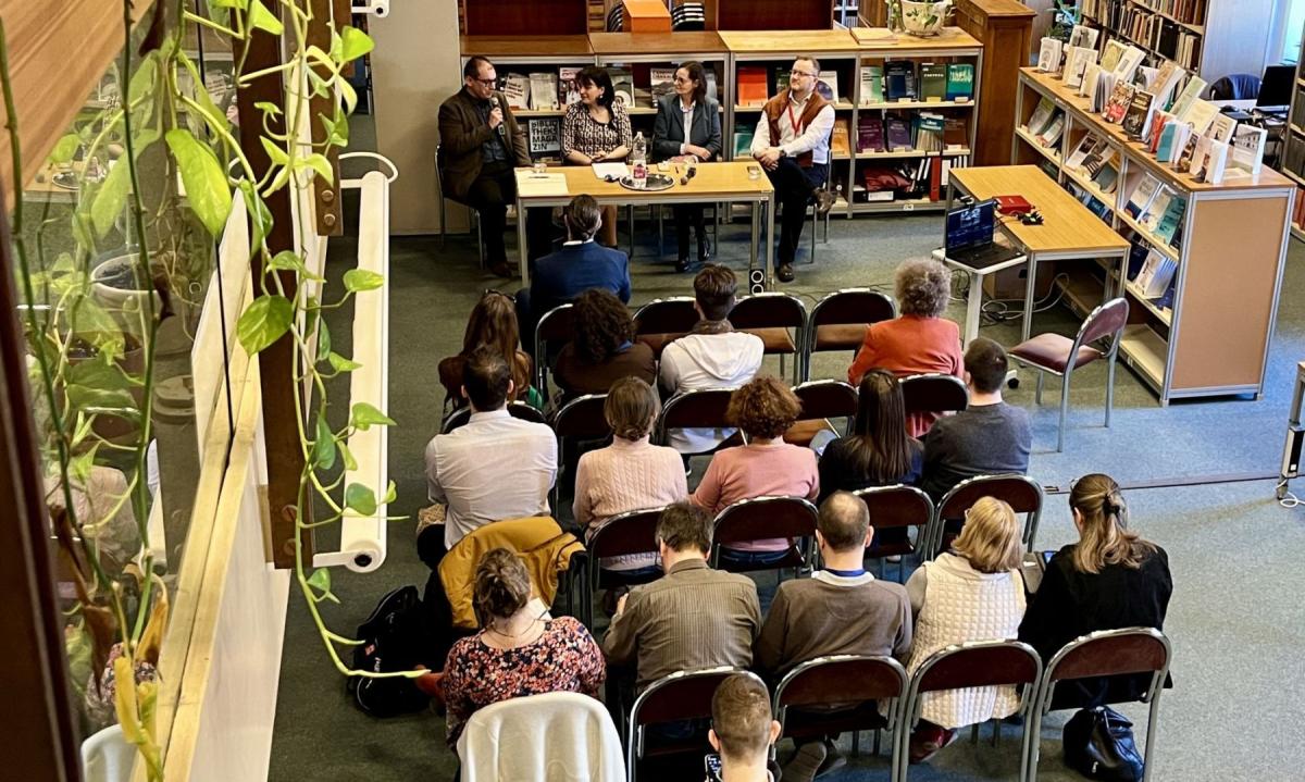 A beszélgetés résztvevői Bálint Ágnes, az Egyházi Könyvtárak Egyesülése (EKE) 2025-ig hivatalban lévő elnöke, Rózsa Dávid, az Országos Széchényi Könyvtár főigazgatója és Virág Barnabás, a kecskeméti Katona József Könyvtár igazgatóhelyettese voltak.