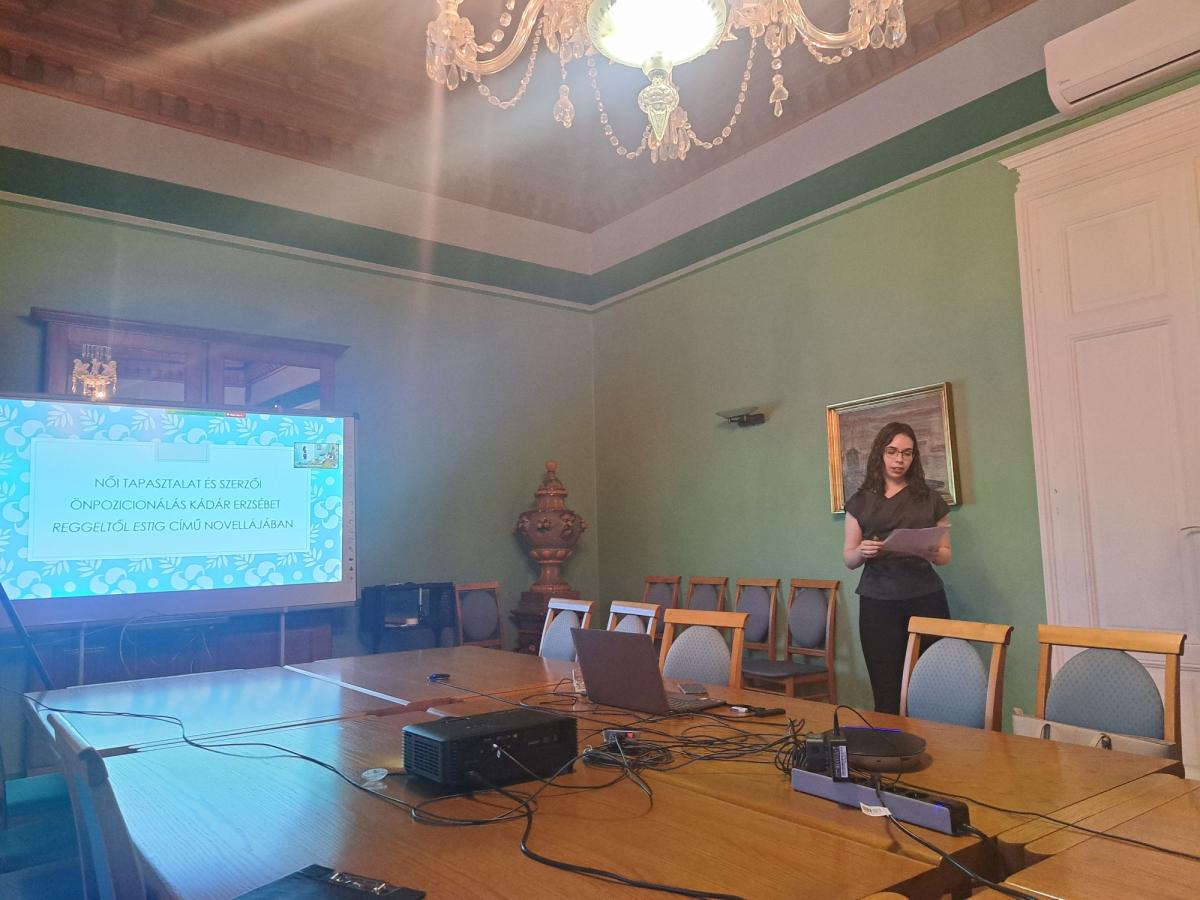 A rendezvény programjában előadást tartott Baranyai Laura, az OSZK Kézirattárának tudományos kutatója Női tapasztalat és szerzői önpozicionálás Kádár Erzsébet Reggeltől estig című novellájában címmel. Előadásában Kádár Erzsébet legismertebb novelláját elemezte, arra keresve a választ, hogy milyen esztétikai és intézményi feltételek között válhatott megszólaltathatóvá a női tapasztalat a két világháború közötti irodalmi nyilvánosságban.