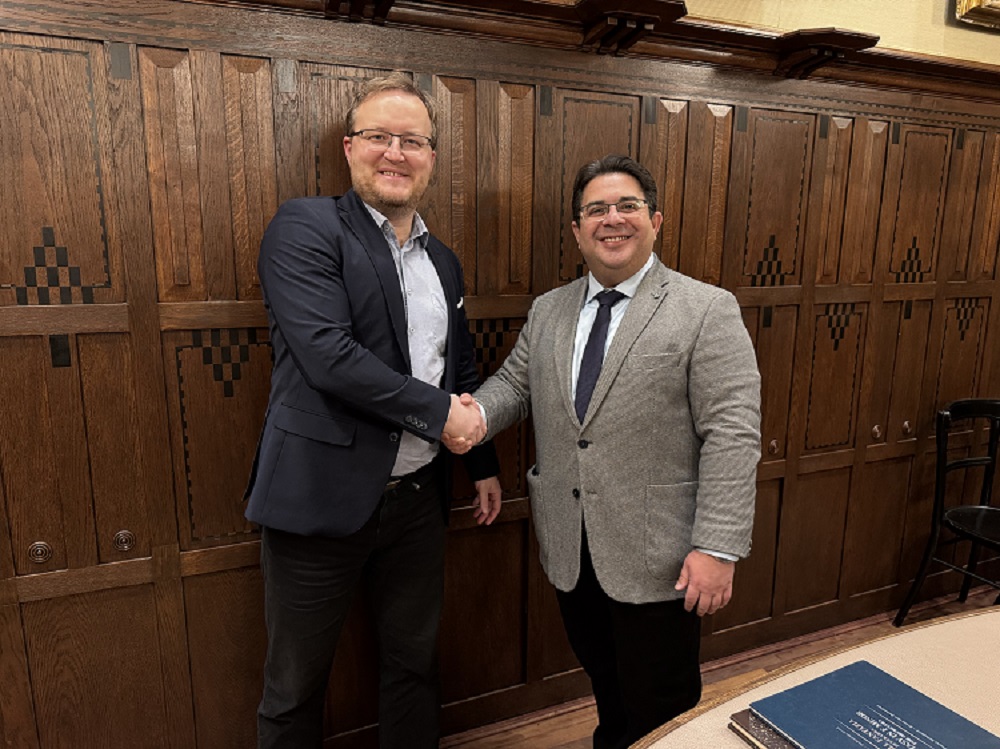 1. kép: Böröcz László, Budapest I. kerületének polgármestere és Rózsa Dávid, az MNMKK Országos Széchényi Könyvtár főigazgatója (Fotó: MNMKK OSZK)