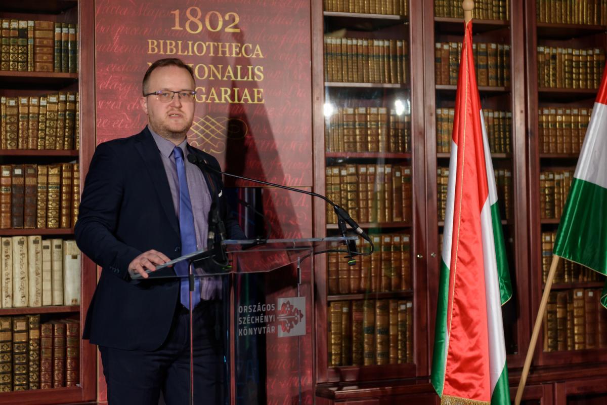 Vincze Máté, a KIM közgyűjteményekért és kulturális fejlesztésekért felelős helyettes államtitkára (Fotó: OSZK)