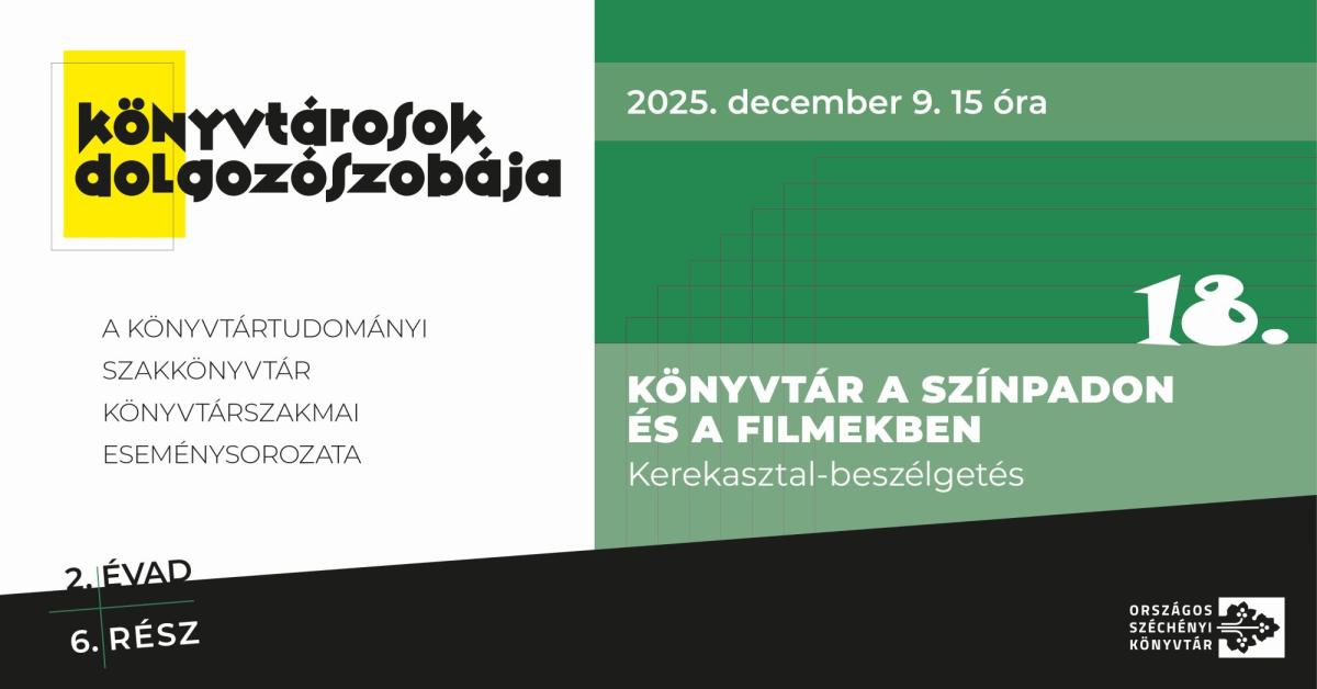 Közelednek az ünnepek, és talán nem túlzás azt mondani, hogy ilyenkor több színházi és filmes élmény ér mindannyiunkat, mint az év más időszakaiban. A könyvtárakról és könyvtárosokról rengeteg sztereotip kép van. Vajon hogyan befolyásolják ezt a képet a színházi és filmes tapasztalataink? Soron következő Könyvtárosok dolgozószobája rendezvényünkön meghívott vendégeink többek közt erről is fognak beszélgetni.