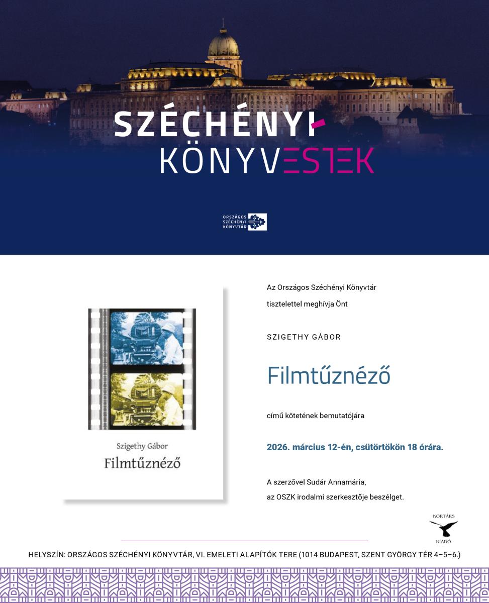 Könyvbemutatónkon Szigethy Gábor színháztörténész, rendező, egyetemi oktató 2025-ben megjelent kötetéről beszélgetünk. A Filmtűznéző a magyar mozimúlt 1946 és 1976 közötti történetét dolgozza fel negyvenhét magyar film bemutatásával. A szerző beszélgetőtársa Sudár Annamária, az OSZK irodalmi szerkesztője lesz.