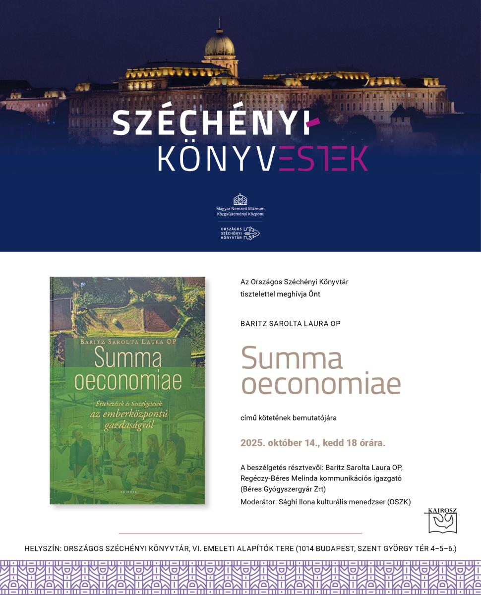 Második alkalommal Baritz Sarolta Laura OP Summa oeconomiae. Értekezések és beszélgetések az emberközpontú gazdaságról című kötetének bemutatójára várjuk az érdeklődőket.