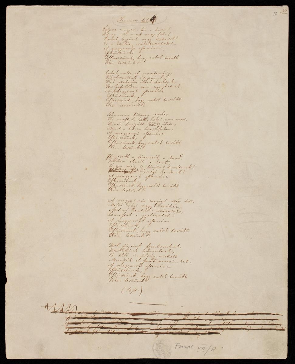 1848. március 15-e és a Nemzeti dal elválaszthatatlanul összeforrott a nemzeti emlékezetben. De vajon mikor született Petőfi költeménye? Hol szavalta el maga a költő a forradalom napján? Mikor lehetett megemlékezni március idusáról, és mikor tiltották az ünneplést ez elmúlt több mint másfél évszázadban? Mikor jelent meg a vers a XIX. században, és mikor nem kerül(hetet)t be a kötetekbe? Milyen nyelvű fordításai léteznek, és ki mindenki zenésítette meg? Kiknek a művére hatott később az irodalomban? Ezekre a kérdésekre is választ keres az előadás.